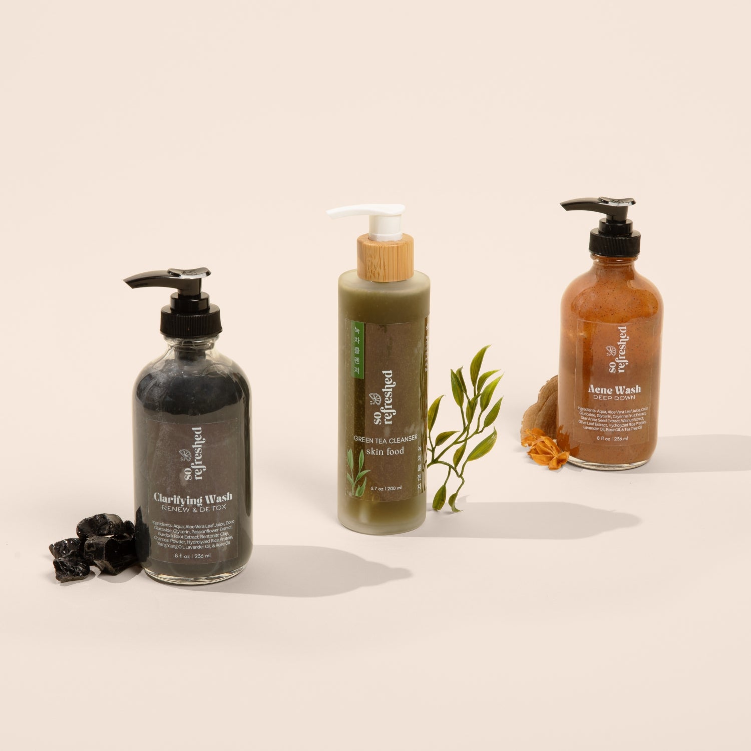 Start your ritual with the Clarifying Wash to detox, follow with our soothing Green Tea Cleanser, then target blemishes with Deep Down Acne Wash — your skin’s weekly reset, made simple.